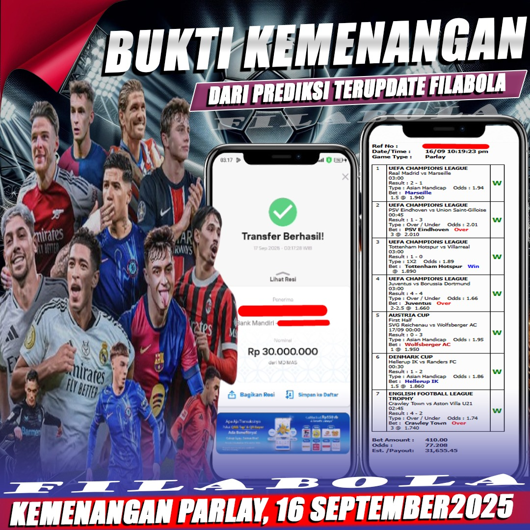 Apakah Anda seorang bettor yang mengandalkan data dan analisa? Di Filabola, kami menyediakan prediksi bola harian yang akurat berdasarkan statistik, performa tim, kondisi pemain, dan tren pertandingan. Semua prediksi dibuat oleh tim analis berpengalaman yang terus memantau perkembangan liga-liga besar dunia, mulai dari Liga Inggris, Serie A, La Liga, Bundesliga, hingga Liga Champions.