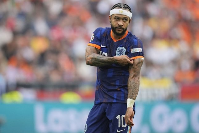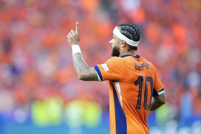 Euro 2024: Pemain Belanda, Memphis Depay (c) AP Photo/Matthias Schrader