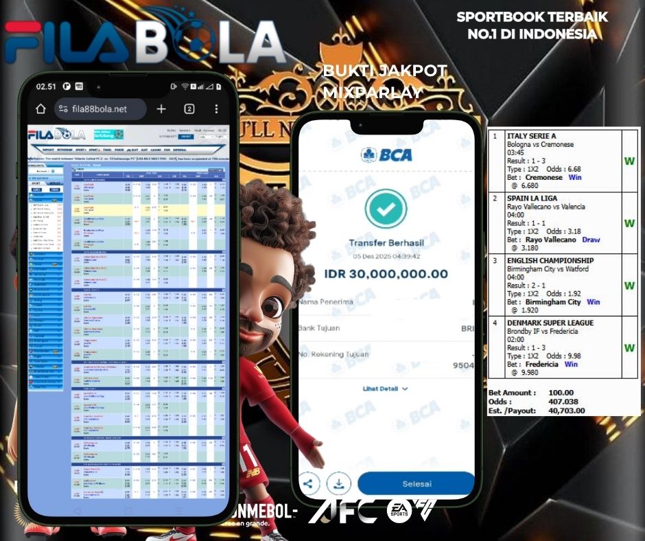 Kabar gembira datang dari platform Filabola, situs terpercaya untuk permainan slot online dan taruhan parlay! Kami mengucapkan selamat sebesar-besarnya kepada para member setia yang berhasil meraih jackpot fantastis dan kemenangan besar di minggu ini.