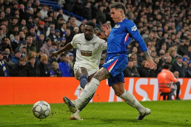 Pada menit ke-62, Estevao kembali gagal menuntaskan peluang setelah terlalu lama menahan bola, sehingga tembakannya bisa diblok pemain bertahan Pafos.