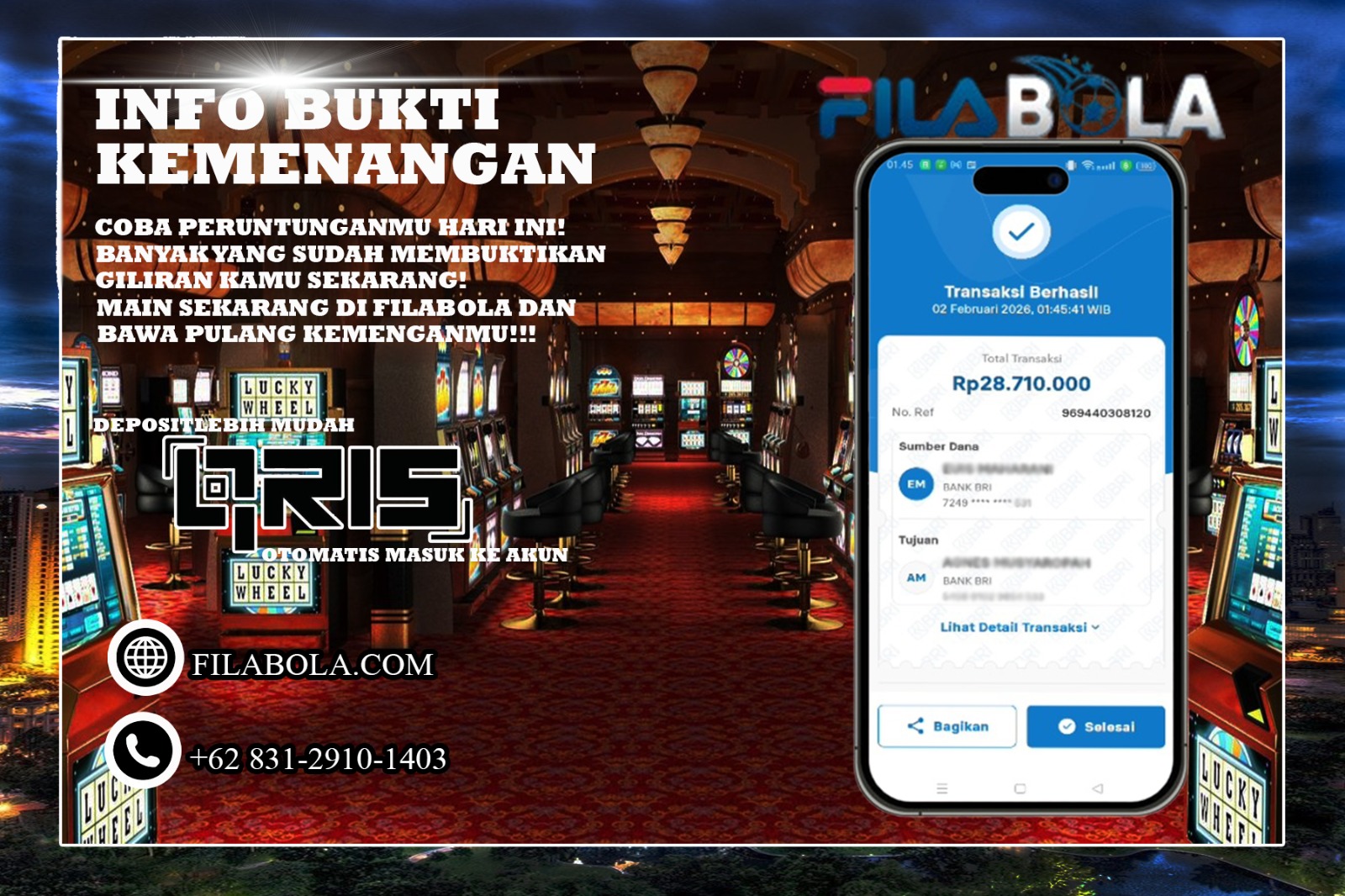 Kabar gembira datang dari platform Filabola, situs terpercaya untuk permainan slot online! Kami mengucapkan selamat sebesar-besarnya kepada para member setia yang berhasil meraih jackpot fantastis dan kemenangan besar di hari ini.